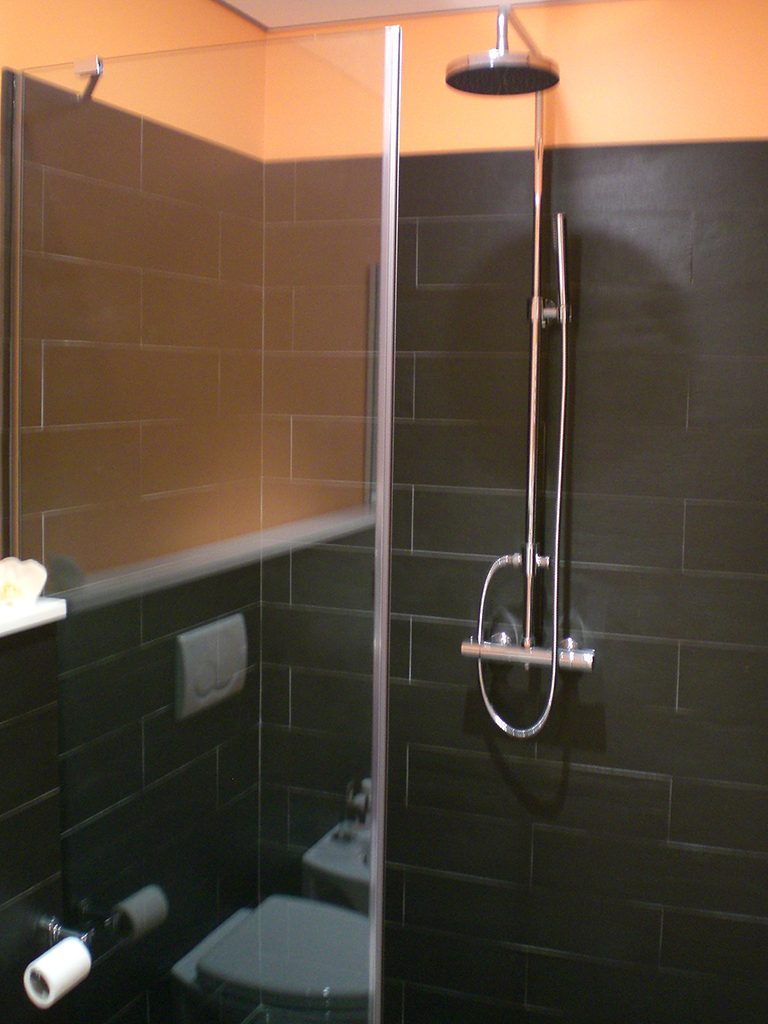 Rivestimento bagno in ardesia nera italiana a spacco naturale spessore 1cm, formato 60x15cm